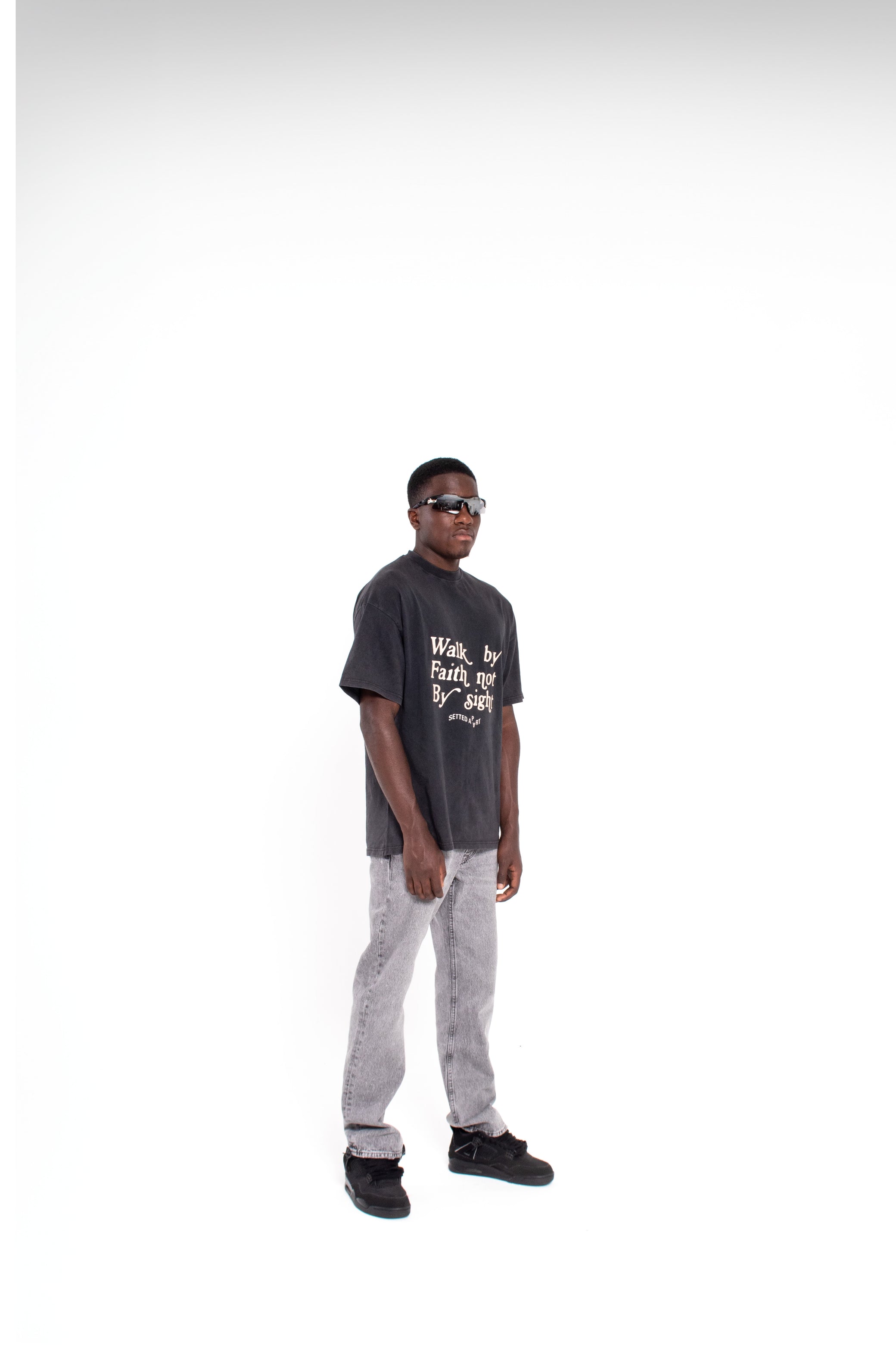 Walk By Faith Not By Sight Vintage Black Oversized Tee